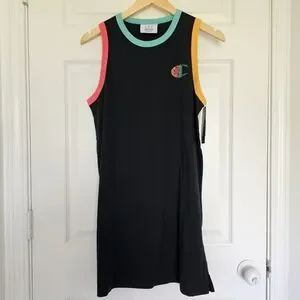 Champion Logo Black Sleeveless Tank Dress with Color Trim Size S