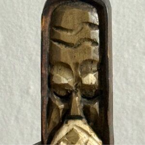 This exquisite handcrafted wooden monk sculpture adds a touch of serenity to any space. The rich brown and cream colors highlight the intricate details of the design. Perfect for enhancing your home art collection.