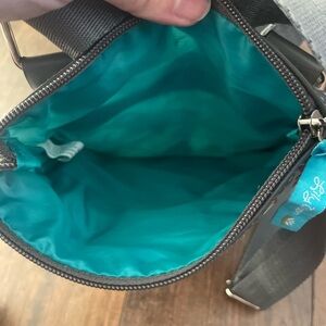 Charming crossbody with floral design. Features multiple zippers. Ideal for casual outings.