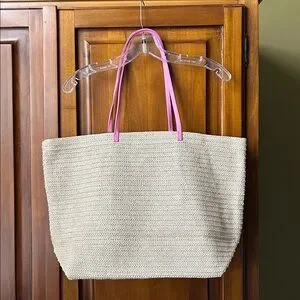 Straw Tote with Faux Leather Trim