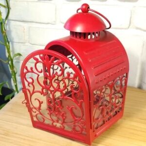Red Curly Vine Pattern Metal Lantern