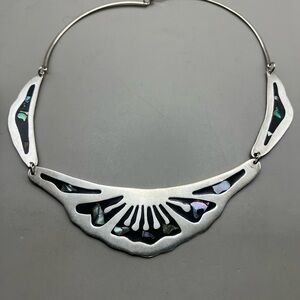 Elegant Sterling Silver Vintage Necklace with Abalone Inlay