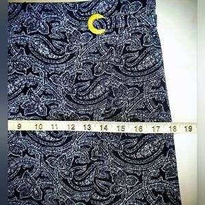 Michael Kors Womens Blue Paisley Faux Wrap Skirt with Gold Accents Size Small measurements pictured