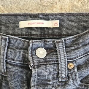 Levi's wedgie skinny jeans. Waist measures 25 in, inseam 25 in. 99% cotton 1% spendex/elastin.