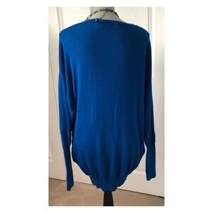 Victoria’s Secret Moda International gorgeous v-neck sweater tunic. My daughter wore with tights & booties, or can be worn as a sweater. Body style is dolman with tight knit sleeves as shown. 85% cotton/15% cashmere. Approx measurements: underarm to underarm 23”, underarm to bottom ribbing 19”, sleeves 23”, from shoulder to bottom 31”. Only worn once! (Belt not included). Also has side pockets.