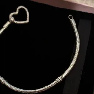 Chic Pandora bracelet with a heart charm. Adds elegance to any look. Comes with box