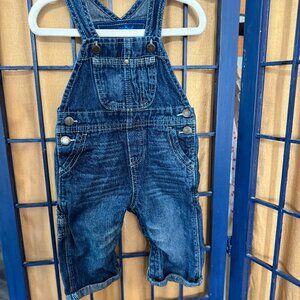 Genuine Baby by OshKosh denim overalls in size 9 months. Classic medium wash with adjustable straps, side buttons, and functional pockets. Soft, durable denim — perfect for everyday wear or photos.
