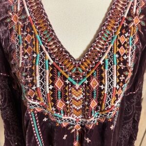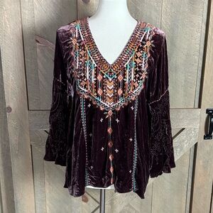 Johnny Was Chiri velvet blouse with embroidery and bell sleeves Size Medium
