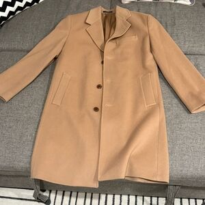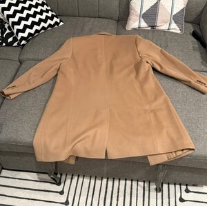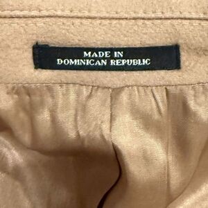Beautiful light camel color, cashmere & wool blend, fully lined, 3 front buttons and 3 functional front pockets. Made in Dominican Republic.