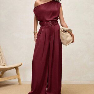 Step into sophisticated comfort with these burgundy pleated high‑waist wide‑leg pants, finished with a matching belt for a polished silhouette. The regular fit and long length drape gracefully, making them a perfect choice for late‑fall gatherings, holiday parties, or Christmas celebrations. The elegant design combines classic style with modern flair, offering a versatile wardrobe staple that moves effortlessly from festive events to everyday chic.