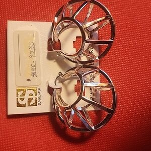 Chic and modern silver hoop earrings by Sunflower. These geometric earrings add a stylish touch to any outfit.