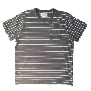Mollusk Organic 100% Cotton Grey White Striped Pocket Tee – Men’s Large