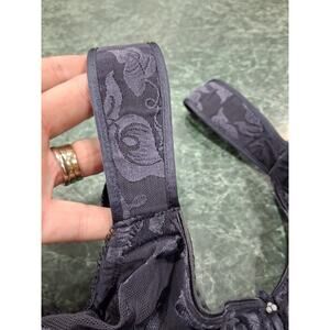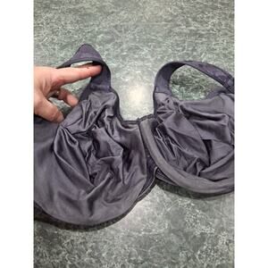 Wacoal Women's Awareness Full Figure Seamless Underwire Bra 85567 in size 44DDD is a high-quality underwired bra designed for a full figure fit. It features a floral pattern, wide straps, a hook & eye closure, and a comfortable hand wash only care instruction. Made of nylon with a blended fabric, this bra offers full coverage and seamless support with adjustable straps for a personalized fit. The gray color and bow accent add a stylish touch to this essential intimates piece from the Wacoal brand.