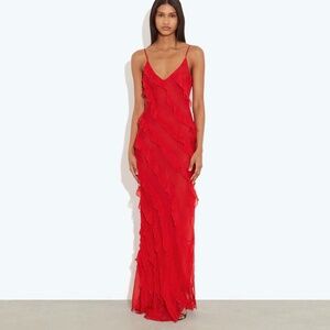 Silk, Floor Length, Adjustable, Lining, Made to be Semi-Sheer, Runs VERY Small (for reference I am usually a M/6) Worn Once for Engagement Photo-Shoot, Dry Cleaned