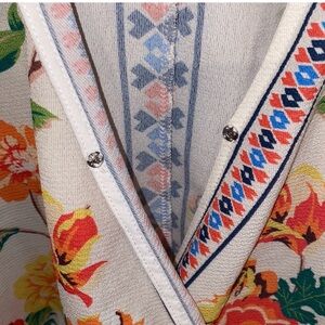 Beautiful floral embroidered kimono cardigan with vibrant colors. Perfect for adding a pop of color to any outfit.