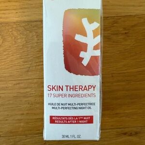 Experience the rejuvenating power of Skin Therapy Multi-Perfecting Night Oil. Infused with 17 super ingredients, this red-hued oil revitalizes your skin overnight.