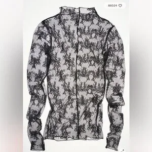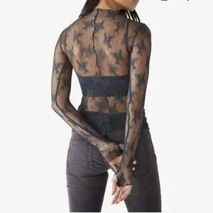 ⚜️Elegant black lace sheer top with intricate floral patterns.