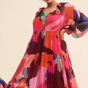 Anthropologie The Marais Printed Chiffon Maxi Dress.