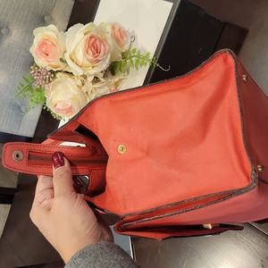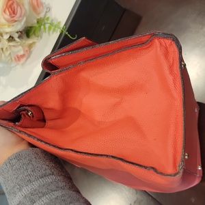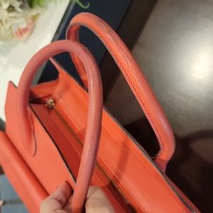 Elegant pink leather handbag with a sleek design. Perfect for any occasion.