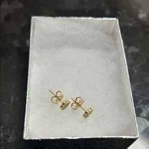 New without tags. These elegant gold earrings feature a charming green clover design, perfect for adding a touch of sophistication to any outfit.