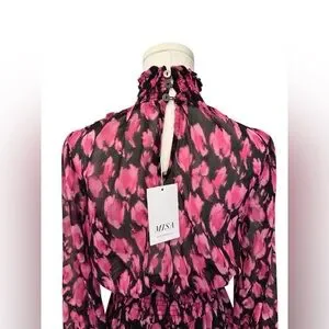 Misa Los Angeles Pink Black Leopard Floral Flowy Dress Size XS NWT $355 MSRP