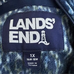 Lands' End Navy and White Patterned Fleece Quarter Zip Women’s 1X