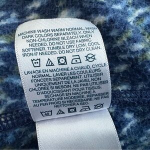 Warm fleece quarter zip top with unique blue and white print pattern. See pictures for measurements. Is in good used condition.