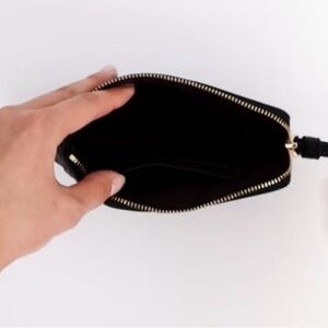 💕NIB COACH Signature Leather Corner Zip Black Wristlet with two Gold Coach Charms💕