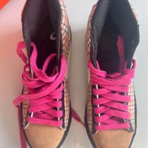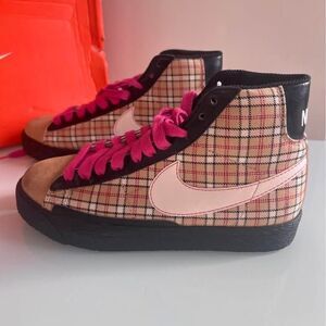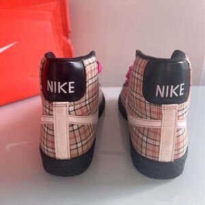 Pre owned in great condition Nike Blazer High Tops in Pink/Hemp/ Plaid/Checkered.