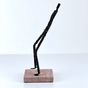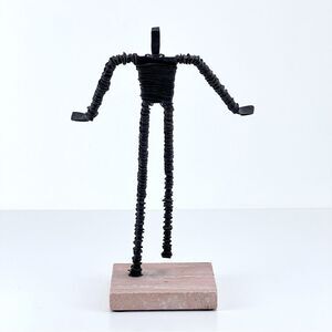 Vintage Brutalist Metal Wire Figure Sculpture On Stone Base
