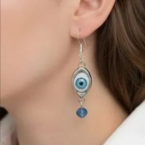 Mystic Blue Evil Eye Dangle Earrings. 6 Cm