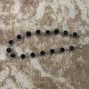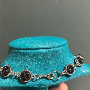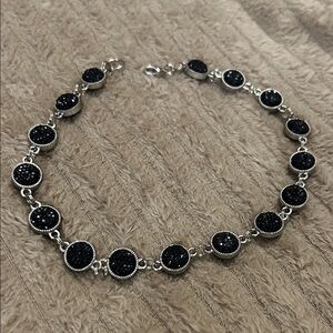 This elegant choker features stunning black stones set in a sleek silver design. Perfect for adding a touch of sophistication to any outfit.
