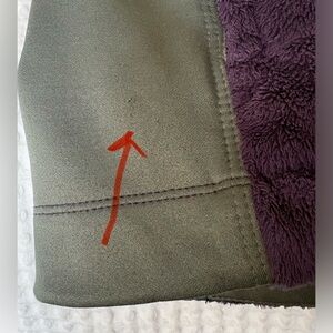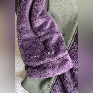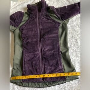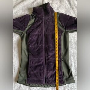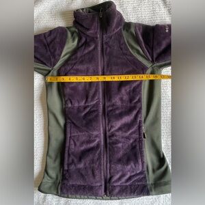 Pretty purple & green. Stretch. Fits close to body for style and warmth. Two front zip pockets, inside slip pockets. Omni-Heat reflective lining. Very small defect on lower right front near pocket: barely visible (see photo) otherwise very good condition. Smoke & scent-free home.