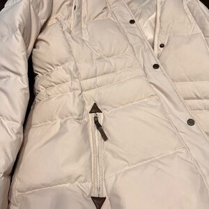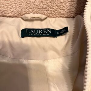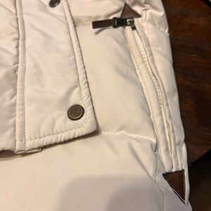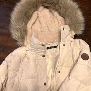 Lauren Ralph Lauren Tan/Cresm Puffer Jacket with Faux Fur Trim minor flap defect
