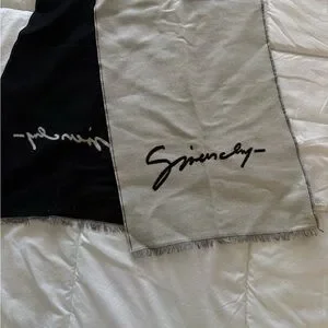 Elegant Givenchy scarf in black and Gray. Features signature design.