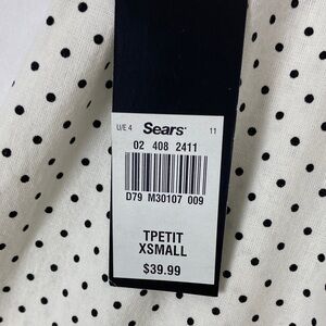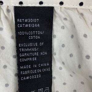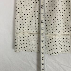 Sears Attitude Mini Skirt. Women's tag size XS Extra Small (see actual measurements in photos). 100% cotton. Cream with black polkadot pattern. Gathered waist. Side zipper. Eyelet accent around hem.