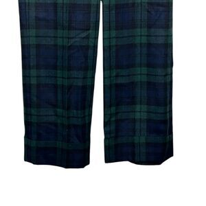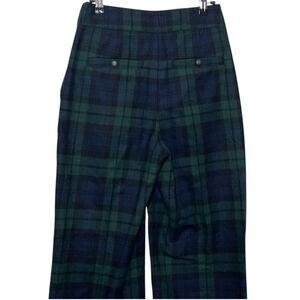 Sezane Martin Plaid Wool Blend Trousers Green Navy Wide Leg Size 4 Preppy