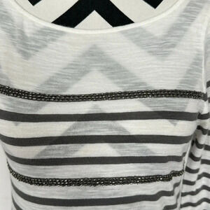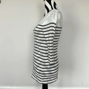 Loft Grey Striped Quarter Length Sleeve Top Sz SM