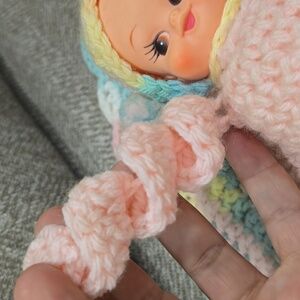 Vintage Pastel Crocheted Baby Doll Lovey Blanket Toy