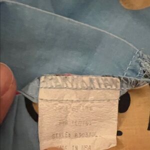 Drawstring with three buttons. Good condition but have been worn/washed some minor fabric fading. Slight tear in fabric, see photo. 100% cotton