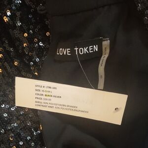 Love Token Black Sequin Blouse With Puffy Sleeves Size SMALL