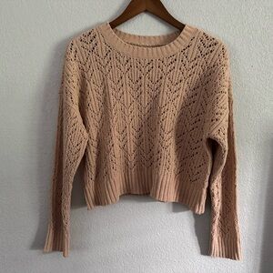 Chic and cozy crew neck sweater. Features intricate knit design. Ideal for layering.