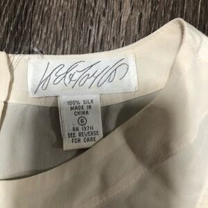 Kelita Taylor, silk, blouse, sleeveless, off-white, cream, ivory, designer, classic, elegant, professional, workwear, sheer, button back, size 6, minimalist