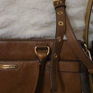 Chic Michael Kors shoulder bag in tan leather. Features adjustable strap and gold-tone accents. Ideal for everyday use. This shoulder bag is gorgous with gold zipper details. Plenty of room and pockets for evetything❣️