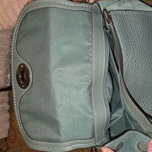 NWT Coach Faye carryall F22348 in leaf (Light green) buffalo embossed leather, smooth leather and suede. Made in 2017. $495 retail. Crossbody strap, hangtag, and care card included. Purse measures approximately 10 inches across by 6 inches high and 6 inches wide. Shoulder strap drop is approximately 7 inches. Turnlock front closure. Magnetic closure on sides. Metal feet on bottom of bag. Silver hardware. No call outs. Comes from smoke free and cat friendly home. Accepting reasonable offers and counteroffers!