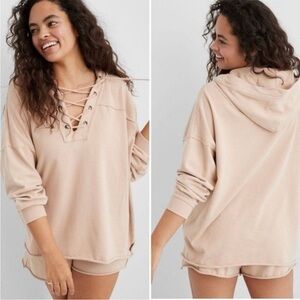 Aerie Rust Lace-Up Casual Hoodie Sweatshirt Size Large