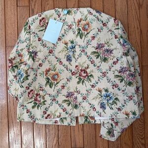 Meet the Virginia Jacket in Tapestry Trellis Brocade. Size medium. Slightly cropped and perfectly boxy, Virginia is a collarless mid-weight jacket crafted from a structured brocade fabric. Tailored seams along the back create a subtle, flattering trapeze shape. Brand new with tags