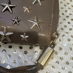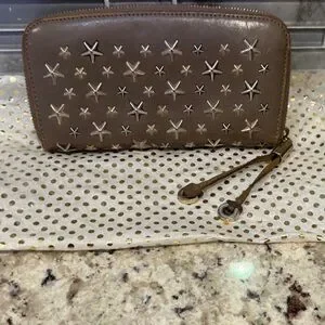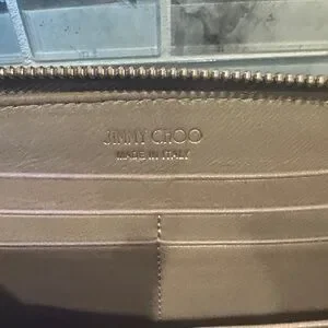 EUC Jimmy Choo Filipa Gold Glitter Studded Zip Around Wallet