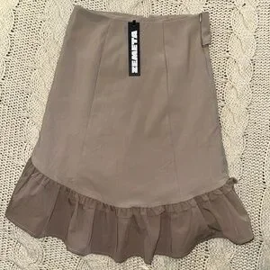Step out in style with this elegant tan ruffle skirt. Perfect for any occasion, this skirt offers a chic and sophisticated look.