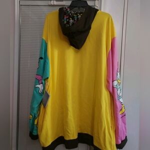 Vibrant hoodie featuring beloved cartoon characters. Bright yellow and pink design with black accents.